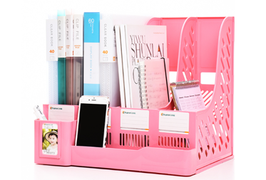 产品: 彩色文件桌面资料收纳立式三四栏带笔筒